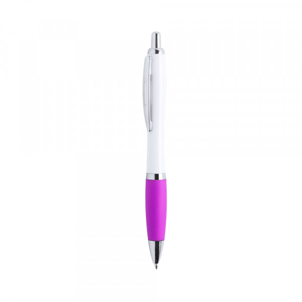 Ball pen in a vivid, bicolor design, with body in white color and grip in a wide range of eye-catching colors. Push-up mechanism, with chromed details, metal clip and blue ink.