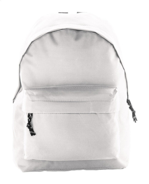 Backpack with zipped front pocket, padded back and shoulder straps. 600D polyester.