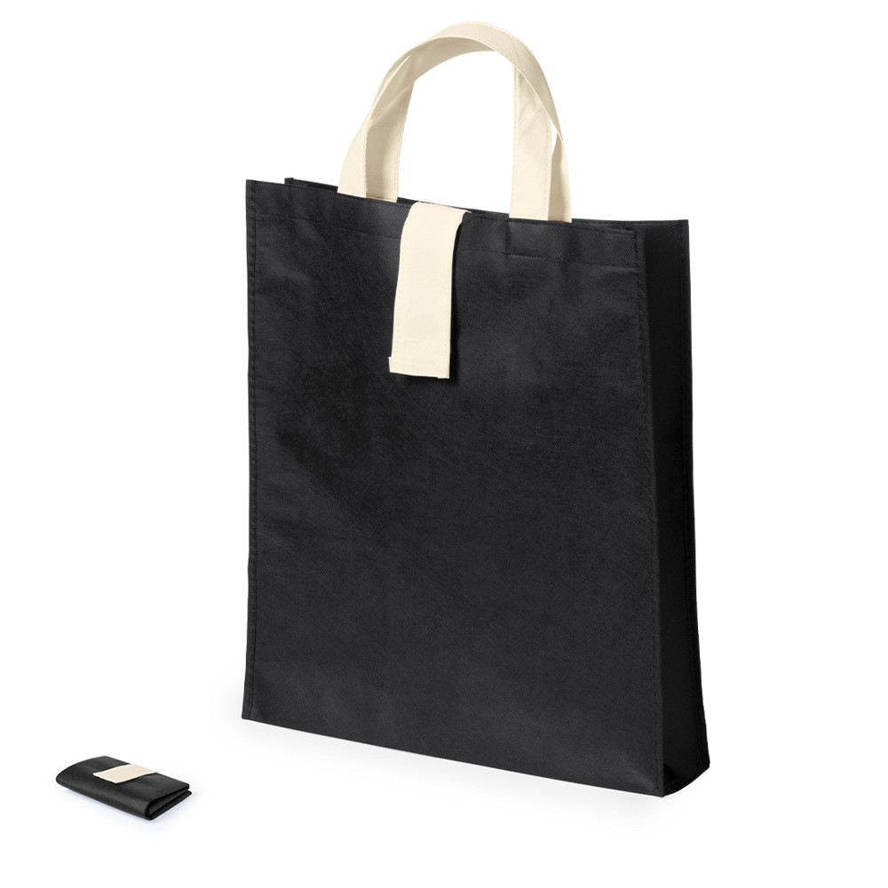 Folding non-woven bag in 80g/m2 in a varied range of bright tones. With short handles in natural color of 37cm, velcro closure in natural color and stitched finishing. Small folding size and resistance up to 8kg weight.