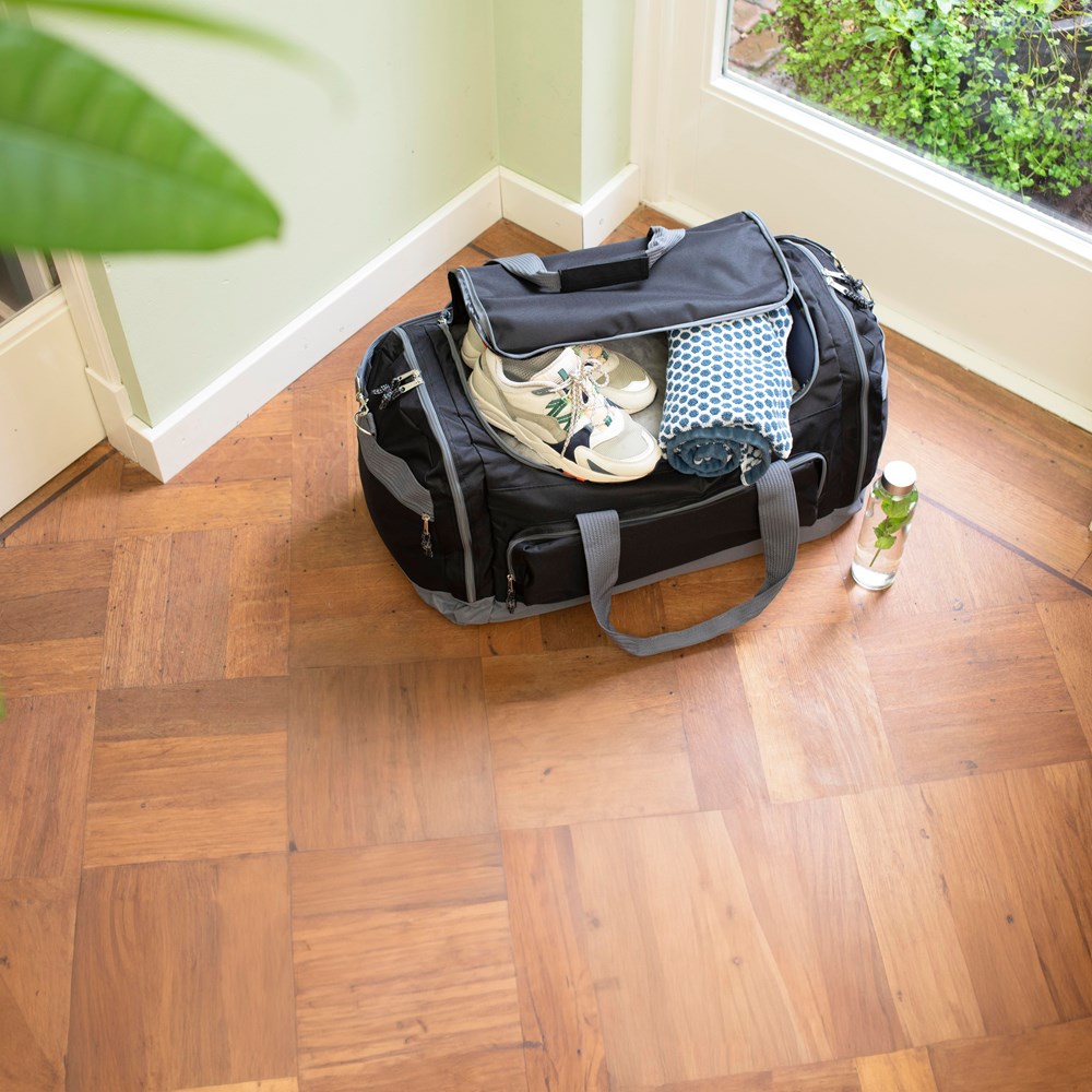 Polyester (600D) sports bag with various compartments and an adjustable shoulder strap. more