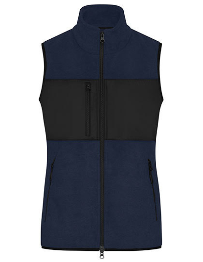 Classic, soft and easy-care fleece made from recycled polyester | Webbing on the front part with breast pocket | Two side pockets and one zipped breast pocket, two inside pockets | Two-way front zip, stand-up collar | Slightly fitted | Zips: YKK
