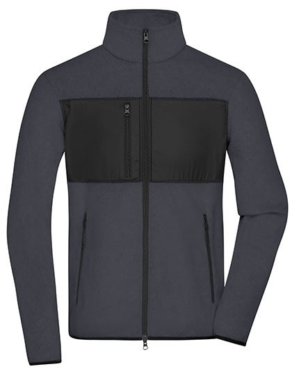 Classic, soft and easy-care fleece made of recycled polyester | Woven trim in the front with chest pocket | 2 side pockets and 1 chest pocket with zip, 2 inside pockets | 2-way front zip, stand-up collar | Zip: YKK
