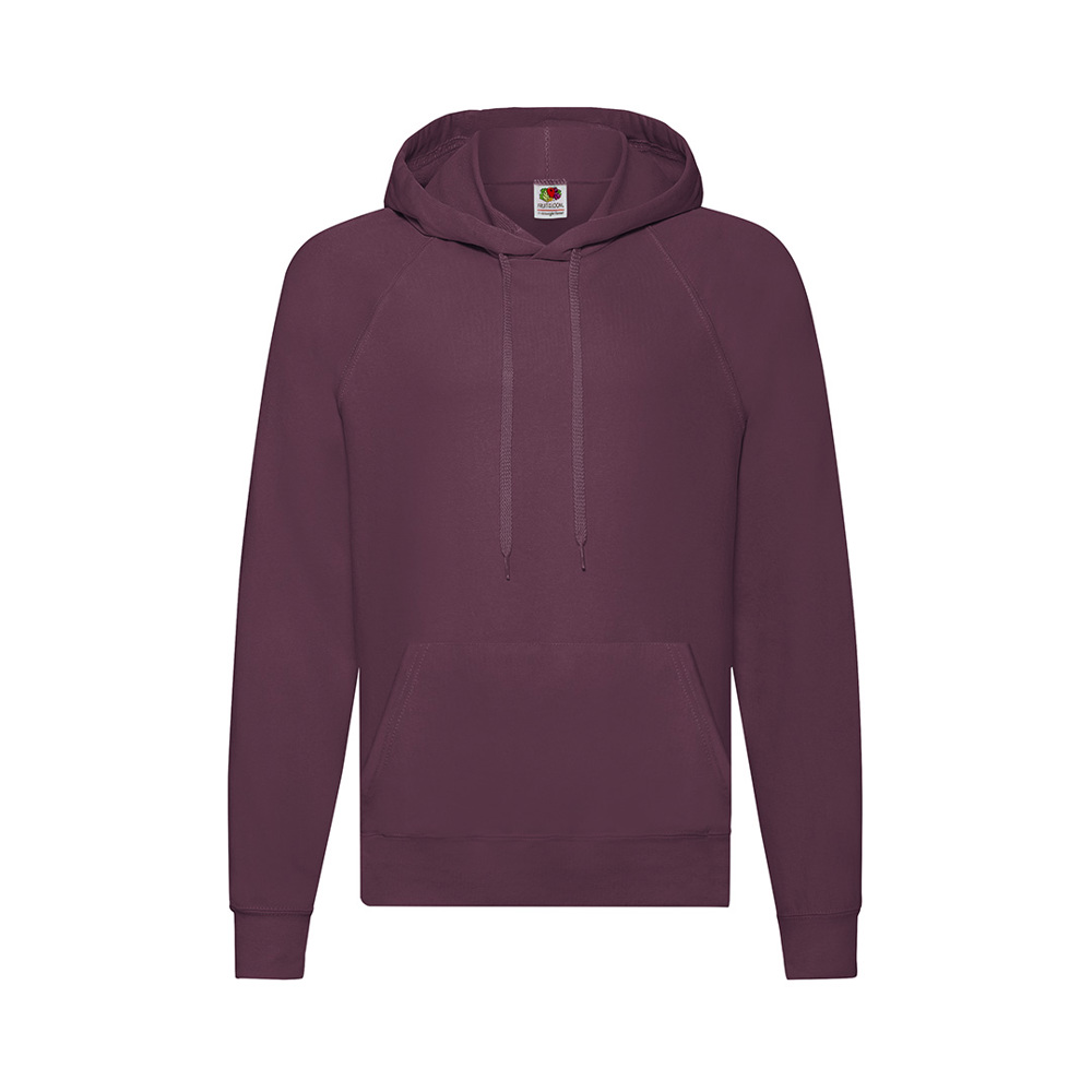 Adult sweatshirt Lightweight Hooded Sweat by Fruit Of The Loom. With hood and matching color, flat design adjusting cord. Made of lightweight unbrushed fleece in a combination of 80% cotton + 20% polyester 240g/m2. With ranglan sleeves and kangaroo pocket. Cotton/LYCRA® collar, waistband and cuffs. Available in a wide range of colours and in sizes S, M, L, XL, XXL.