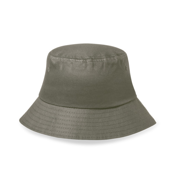 Bob hat made of durable recycled cotton. With embroidered ventilation holes and available in a variety of colours. Recycled cotton logo on outside label. GRS Certification (Global Recycled Standard), which guarantees the recycled origin of the material used to manufacture the product.