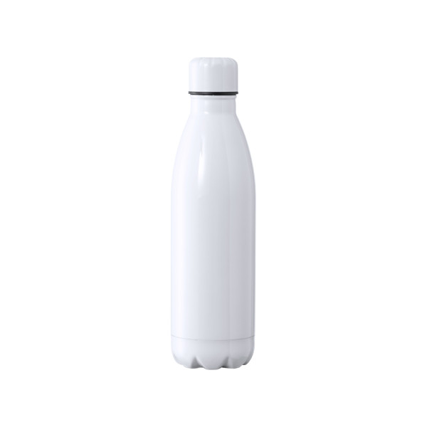 500 ml capacity thermal bottle, made in stainless steel with double wall and specially designed for sublimation printing. Gloss white finish with matching screw cap, BPA free. Presented in an individual box with kraft design.Instruction manual available in Spanish and English.