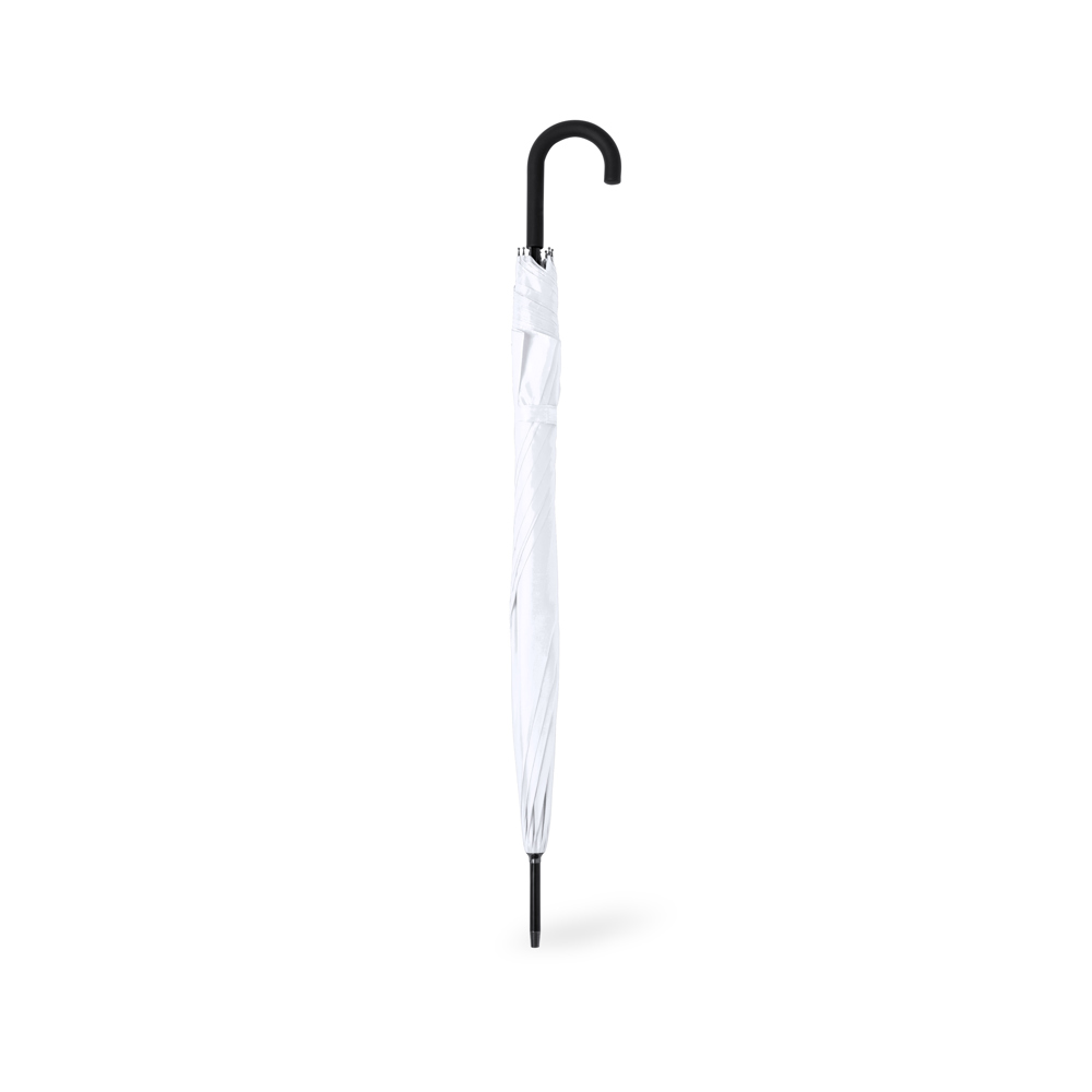 XL size, 8 panel umbrella. 130 cm diameter, made of durable 190T pongee material. Automatic opening and windproof mechanism. Black fibre ribs, with curved handle and velcro closure strap. Available in a wide range of colors.