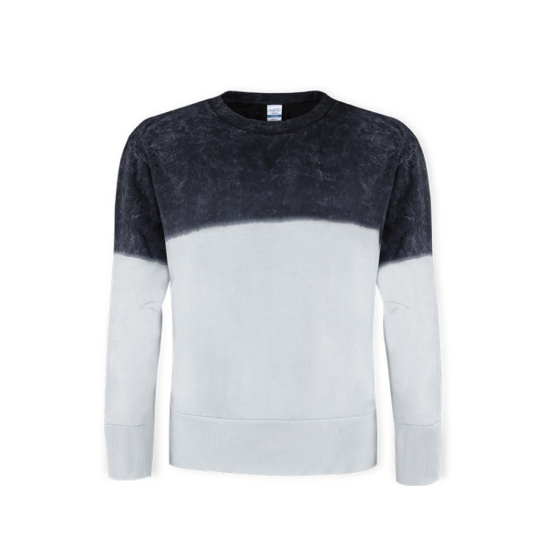 Bicolor unisex sweatshirt with washed and dyed effect on the garment, making each piece unique and unrepeatable. Made in 100% Ring Spun combed cotton 280g/m2. Soft touch and modern cut. Cuff and hem with extra wide elastic bands for a perfect fit. Narrow round neck in 2x2 rib. Double stitchings for durability and resistance to intensive wear. Easily removable label and available in sizes XS, S, M, L, XL and XXL.