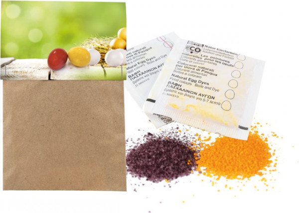 Remain faithful to nature even in Easter time. It is possible with our egg dyes made of natural raw materials. Your advertising or personalisation of the header starts with 250 pieces. Content: 2 natural egg dyes assorted colours (red, yellow) Warning and safety information: Do not leave children unsupervised at a hot cooker or with boiling water!