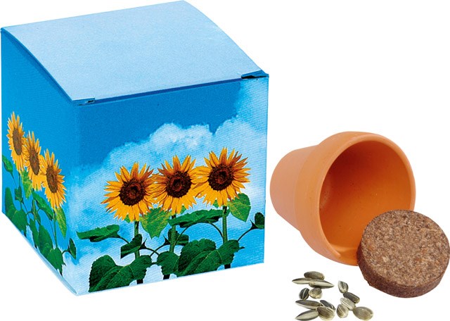 Content: terracotta pot Ø 4 cm, compressed soil, seeds: mini-sunflower