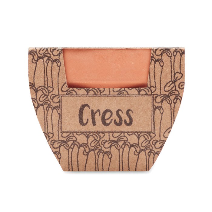Small clay terracotta pot including cress seeds. Made in EU. Soil tablet included.