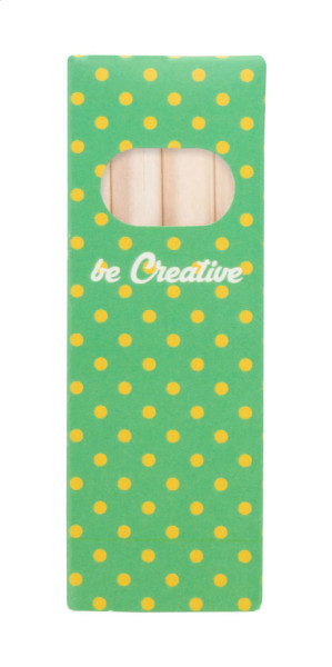 Wooden coloured pencils (4 pcs) in full colour printed paper box. Price includes digital printing. MOQ: 100 pcs.