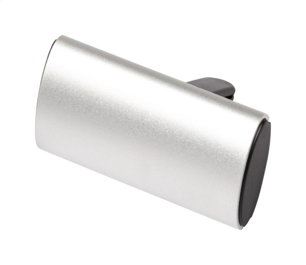 Aluminium car air freshener with air vent mounting and lemon fragrance.