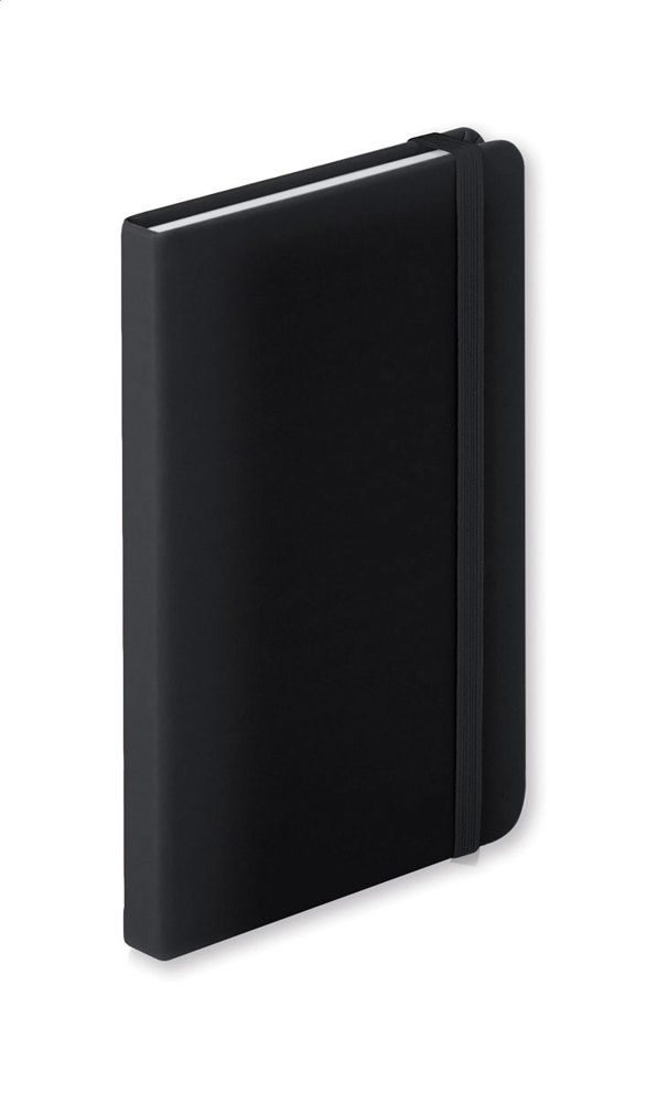 PU leather covered notebook with 100 lined sheets and rubber strap. more