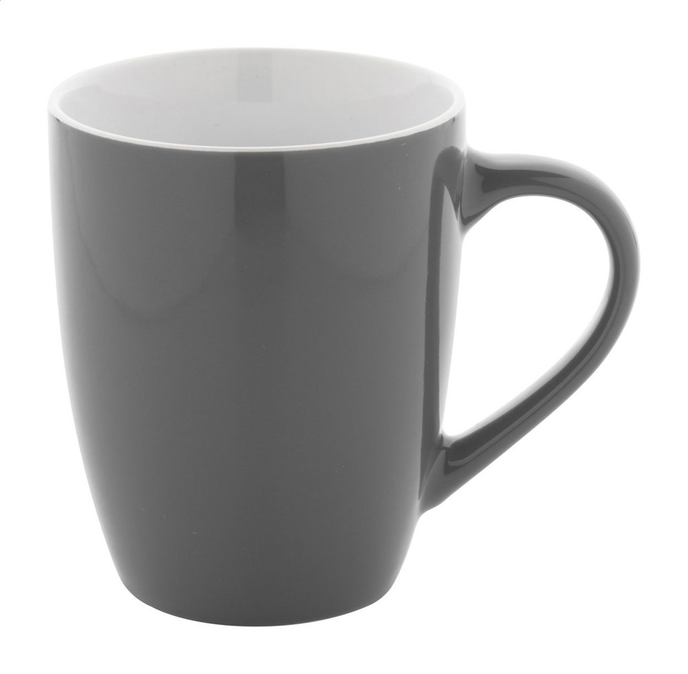 High quality coloured ceramic mug with white inside, 340 ml. In kraft paper box.