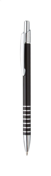 Aluminium ballpoint pen with rings, with chrome clip and tip. With blue refill.