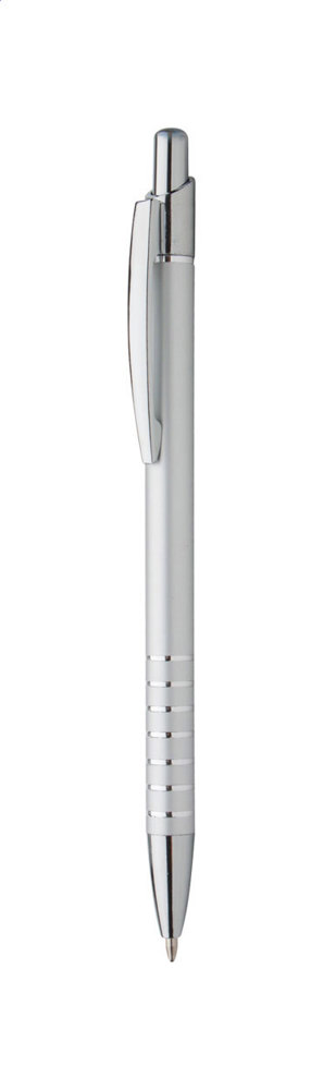 Aluminium ballpoint pen with rings, with chrome clip and tip. With blue refill.