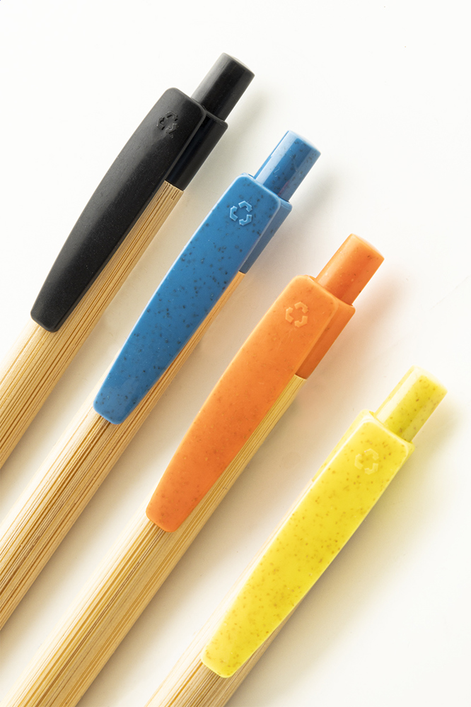 Bamboo ballpoint pen with ecological wheat straw plastic clip and tip. With blue refill.