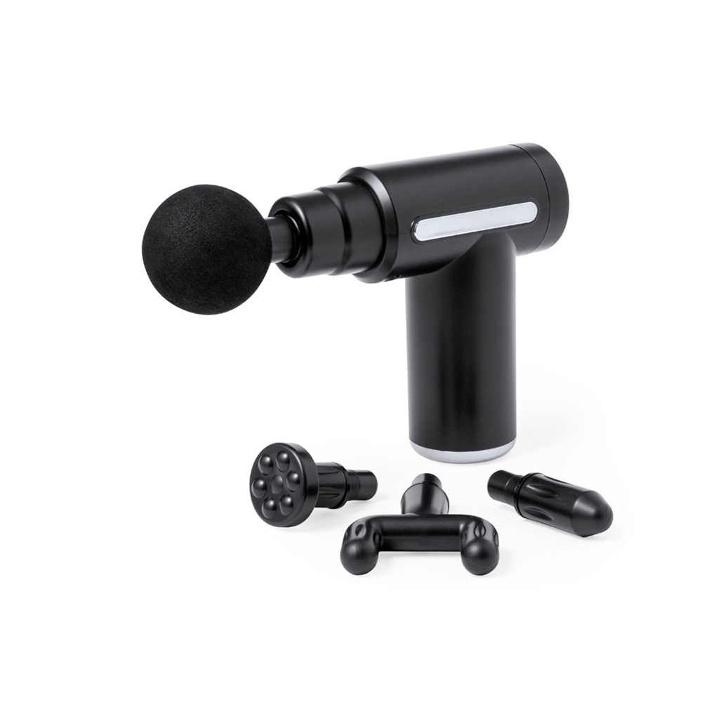 Electric massager. Helps to relax muscles, relieve the effects of training, release tension and revitalise the body. With two intensity settings and 4 heads for use on different areas of the body. Long lasting 1200 mAh rechargeable battery - USB charging cable included. Instructions manualavailable in English and Spanish.