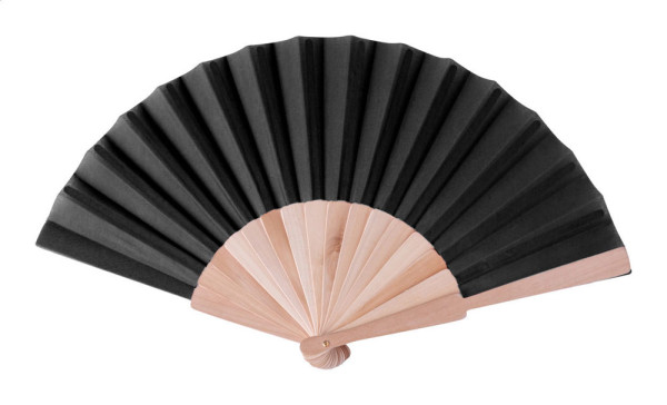 Polycotton hand fan with wooden ribs.