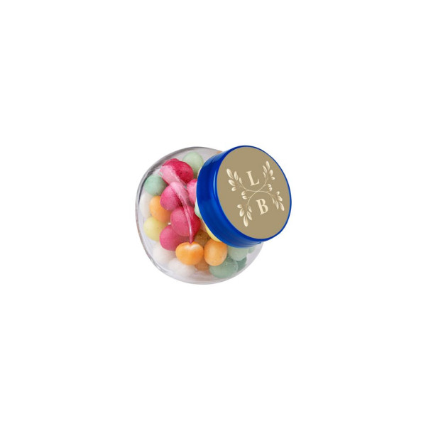 Micro glass jar 50 ml with white lid, including full colour printed sticker on the lid and filled with Licorice sticks mix