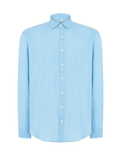Cotton Slub | Long-sleeved shirt | Without buttons on the neck | Placket with button and pleat | Two-button cuffs | Bottom curved
