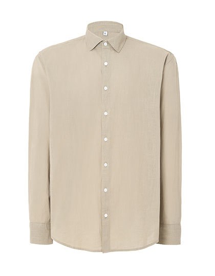 Cotton Slub | Long-sleeved shirt | Without buttons on the neck | Placket with button and pleat | Two-button cuffs | Bottom curved