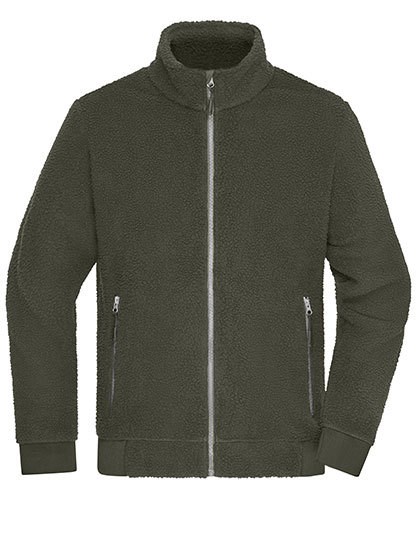Robust, durable, easy care Sherpa fleece made from recycled polyester | Covered zip along full length with chin protection | Stand collar | 2 side pockets with zip fastening | Sleeve cuffs and waistband with elastane | Zips: YKK