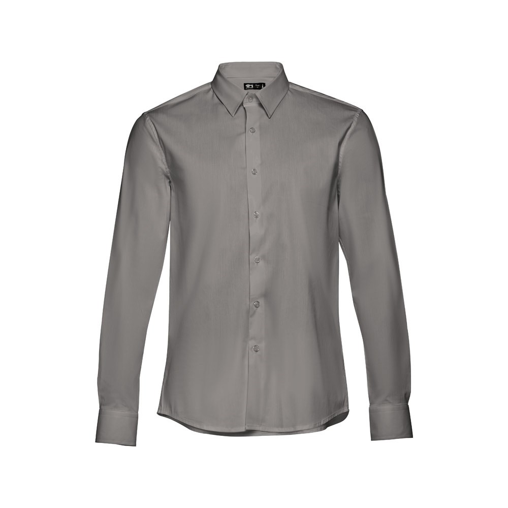 Long-sleeved men's shirt in 68% cotton, 28% polyamide and 4% elastane (115 g/m²). Long sleeve with 1 pleat and adjustable cuffs with 2 buttons. Placket with 7 buttons in matching colour. Sizes: S, M, L, XL, XXL