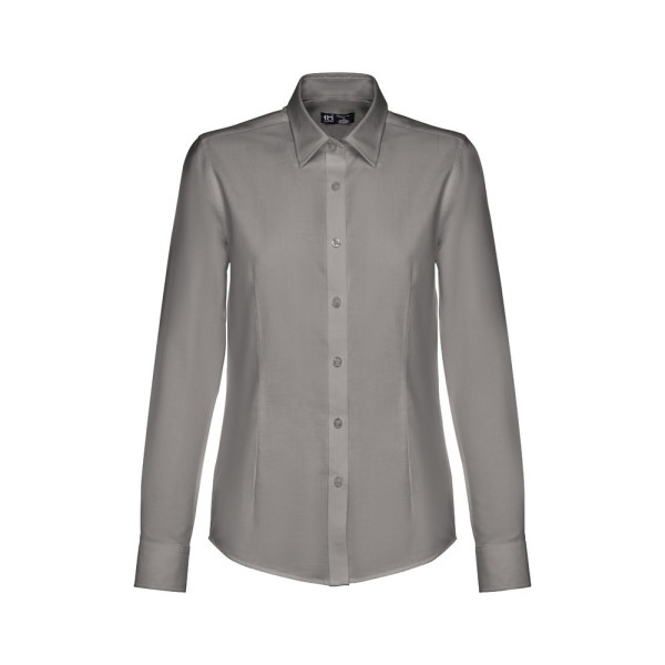 Long-sleeved oxford shirt for women in 70% cotton and 30% polyester (130 g/m²). Contains adjustable cuffs with 2 buttons and sleeve with 1 pleat. Fitted shirt with 2 darts on the front and back, and placket with 7 pearl coloured buttons. Sizes: S, M, L, XL, XXL