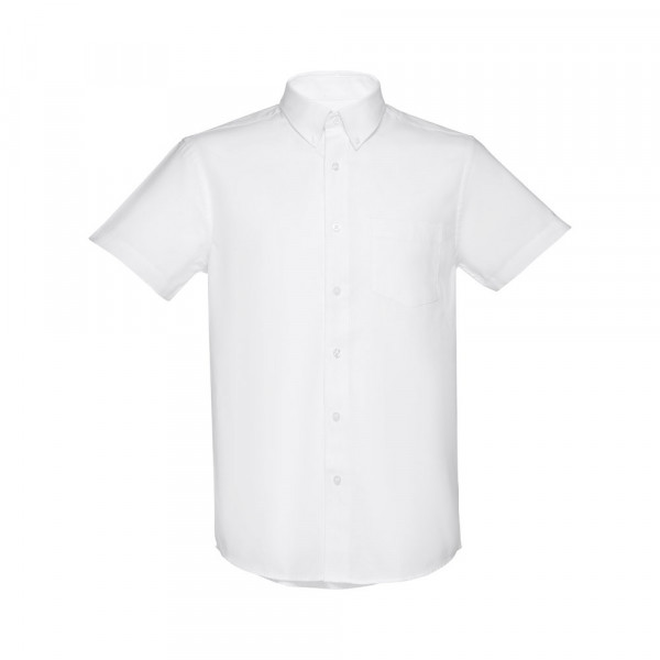 Short-sleeved oxford shirt for men in 70% cotton and 30% polyester (130 g/m²). Contains double seam on sleeve cuff and chest pocket on left side. Collar with 2 buttons and with 7 pearl coloured buttons. Sizes: S, M, L, XL, XXL