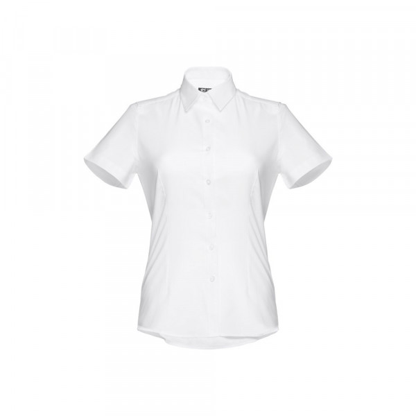 Short-sleeved oxford shirt for women in 70% cotton and 30% polyester (130 g/m²). Fitted shirt with 2 darts on the back and front and double seam on the sleeve hem. Contains 7 pearl coloured buttons. Sizes: S, M, L, XL, XXL