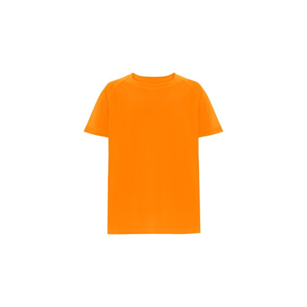 Children's technical T-shirt (150 g/m²) in 100% polyester pique mesh. Regular cut t-shirt with breathable fabric and raglan sleeves. Double stitching on sleeves and bottom. Sizes: 4, 6, 8, 10, 12