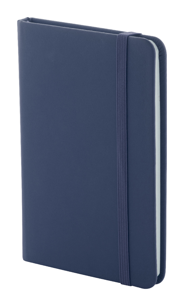 Recycled PU leather covered notebook with 100 blank sheets in recycled paper. With matching colour bookmark and rubber band. A6 size.