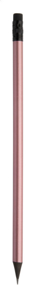 Black wood lead pencil in metallic finish, with black eraser. Sharpened, HB grade. more