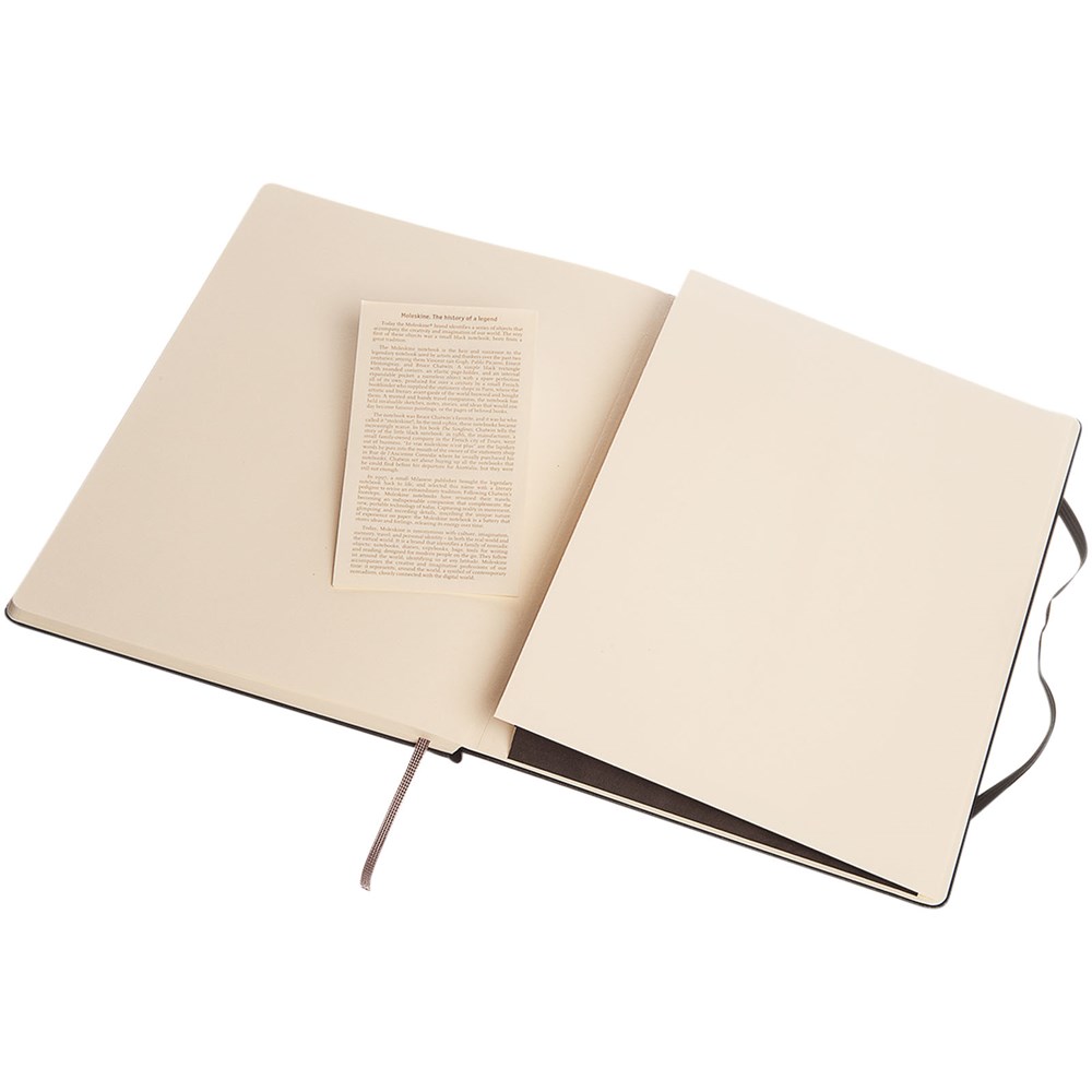Our extra large Moleskine Classic notebook has the iconic round corners and hard cover. Features an elasticated closure and ribbon book marker. Expandable pocket to the inside back cover. Contains 192 pages of ruled ivory-coloured paper.
