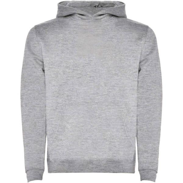 Two-colour hoodie with double fabric. Reinforced covered seams in collar and kangaroo style pocket. 1x1 elastane rib in cuffs and waistband. Removable label. The model is 120 cm and is wearing size 5/6.