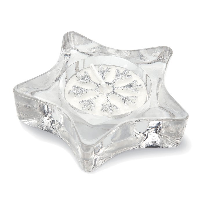 Star shaped glass tea light candle holder in silver box with transparent cover and decorative... more
