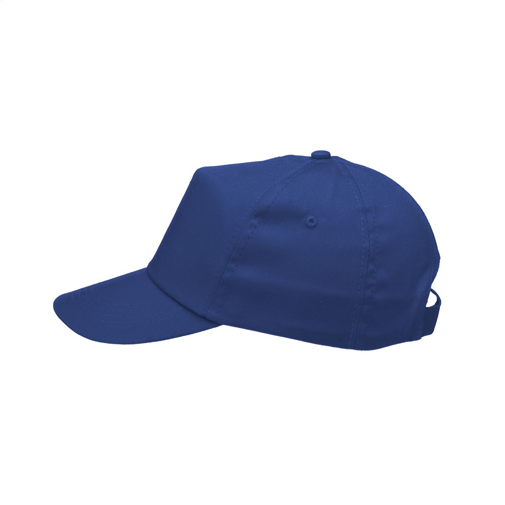 Baseball cap made from 100% cotton with pre-shaped peak and adjustable strap.