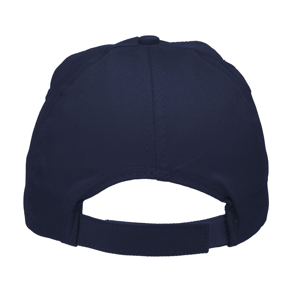 Baseball cap made from 100% cotton with pre-shaped peak and adjustable strap.