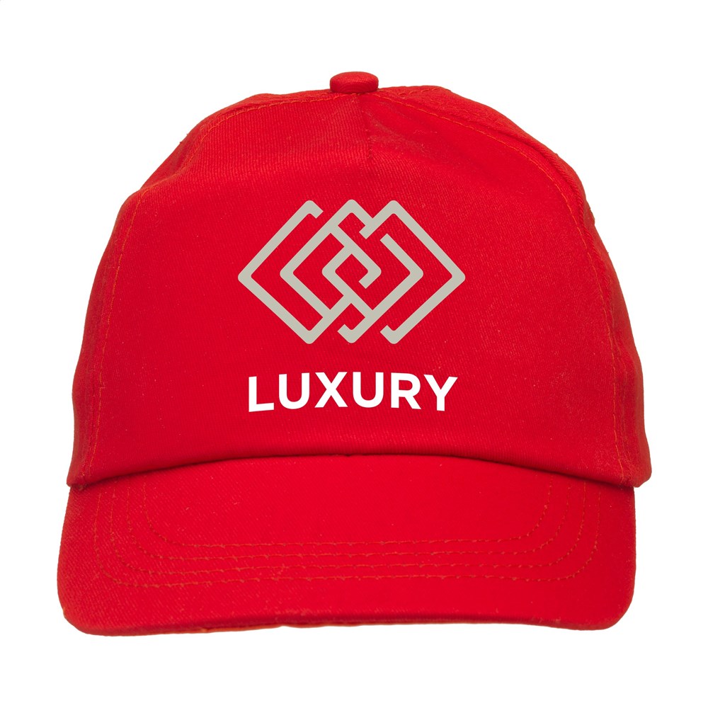 Baseball cap made from 100% cotton with pre-shaped peak and adjustable strap.
