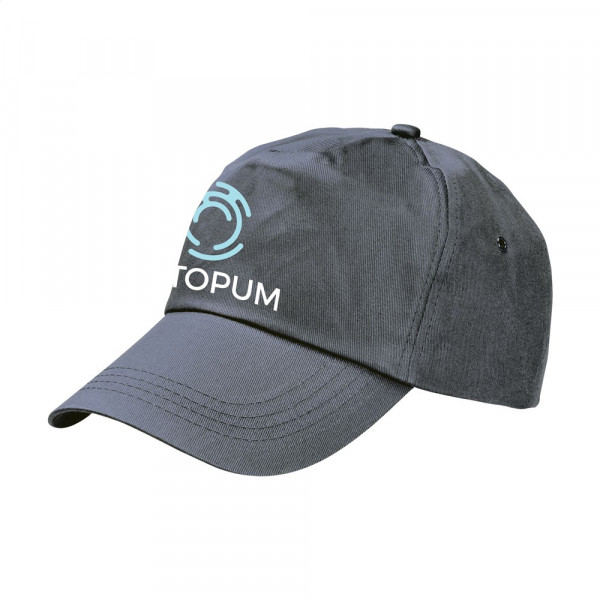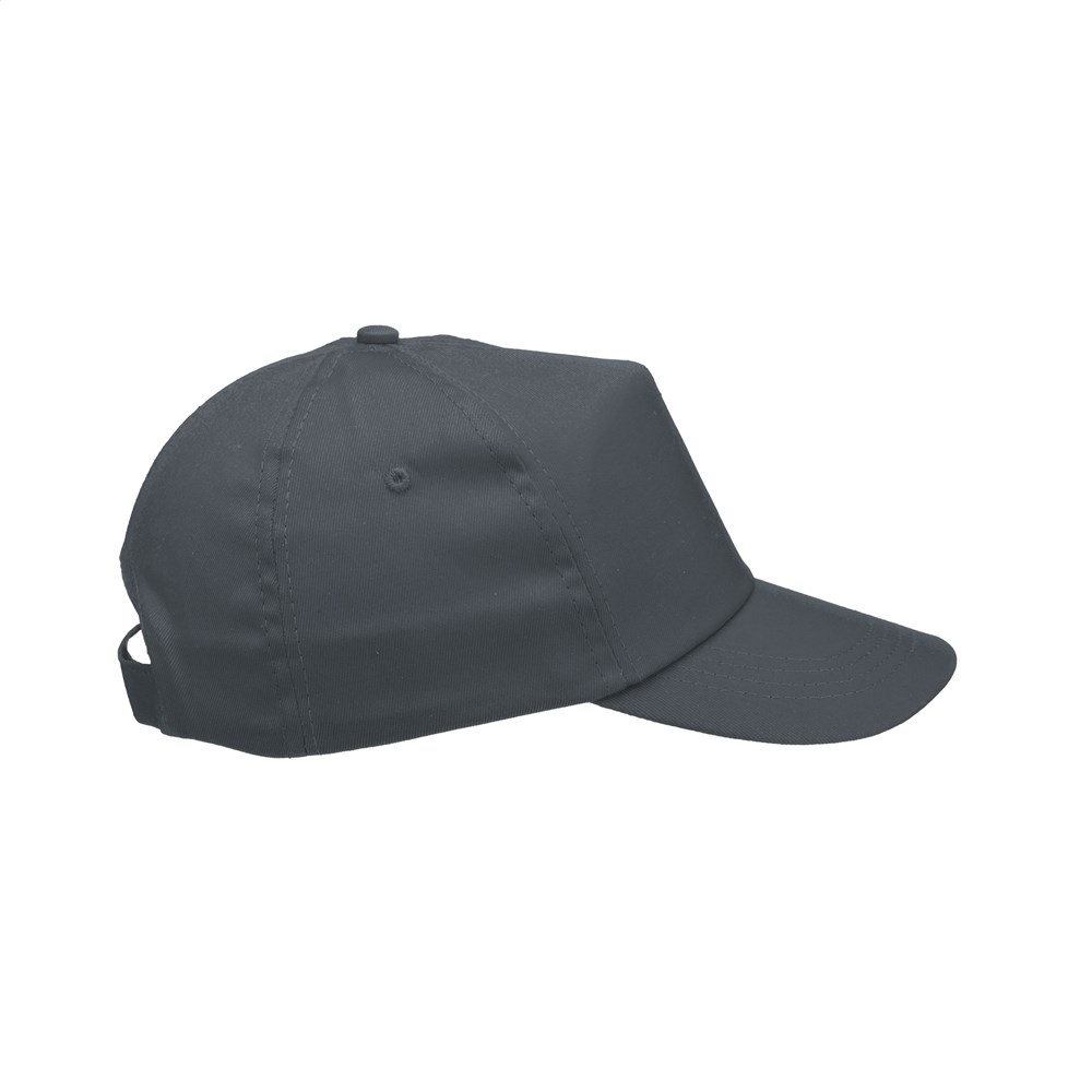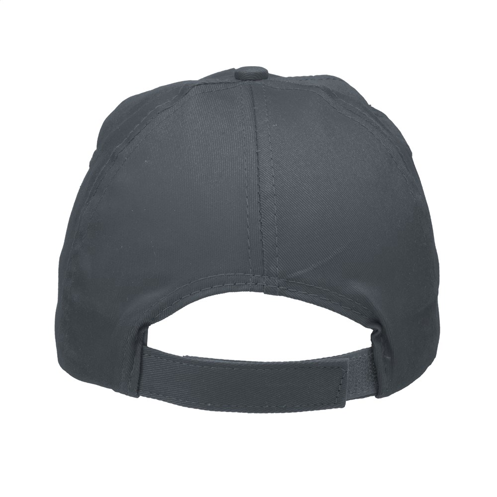 Baseball cap made from 100% cotton with pre-shaped peak and adjustable strap.