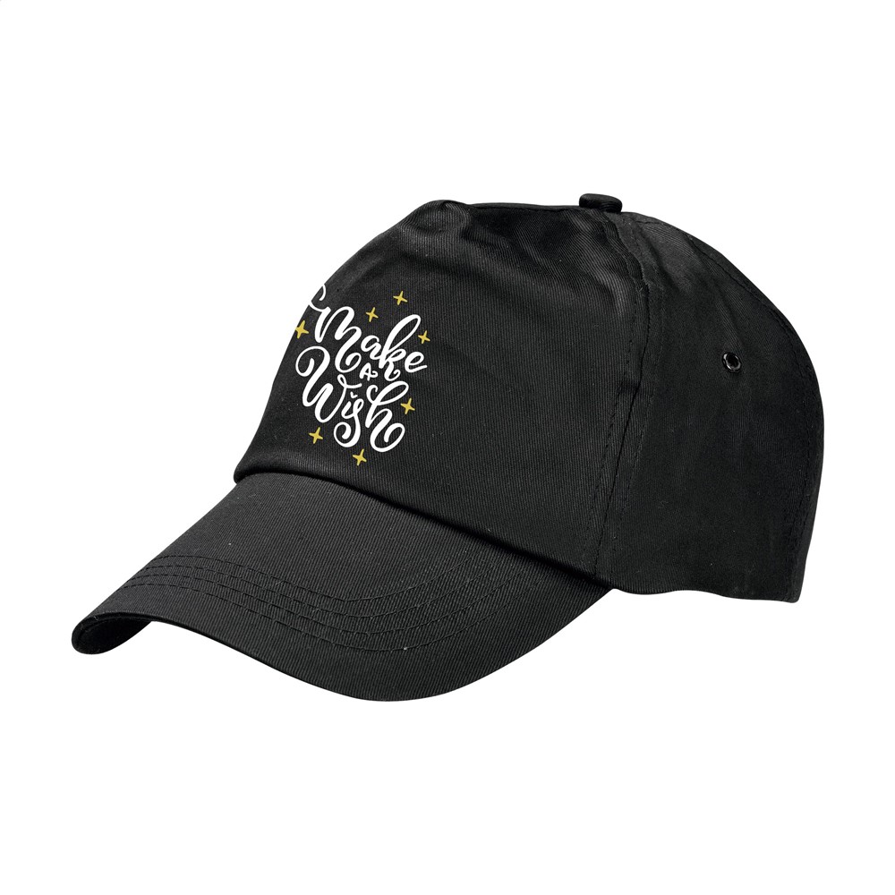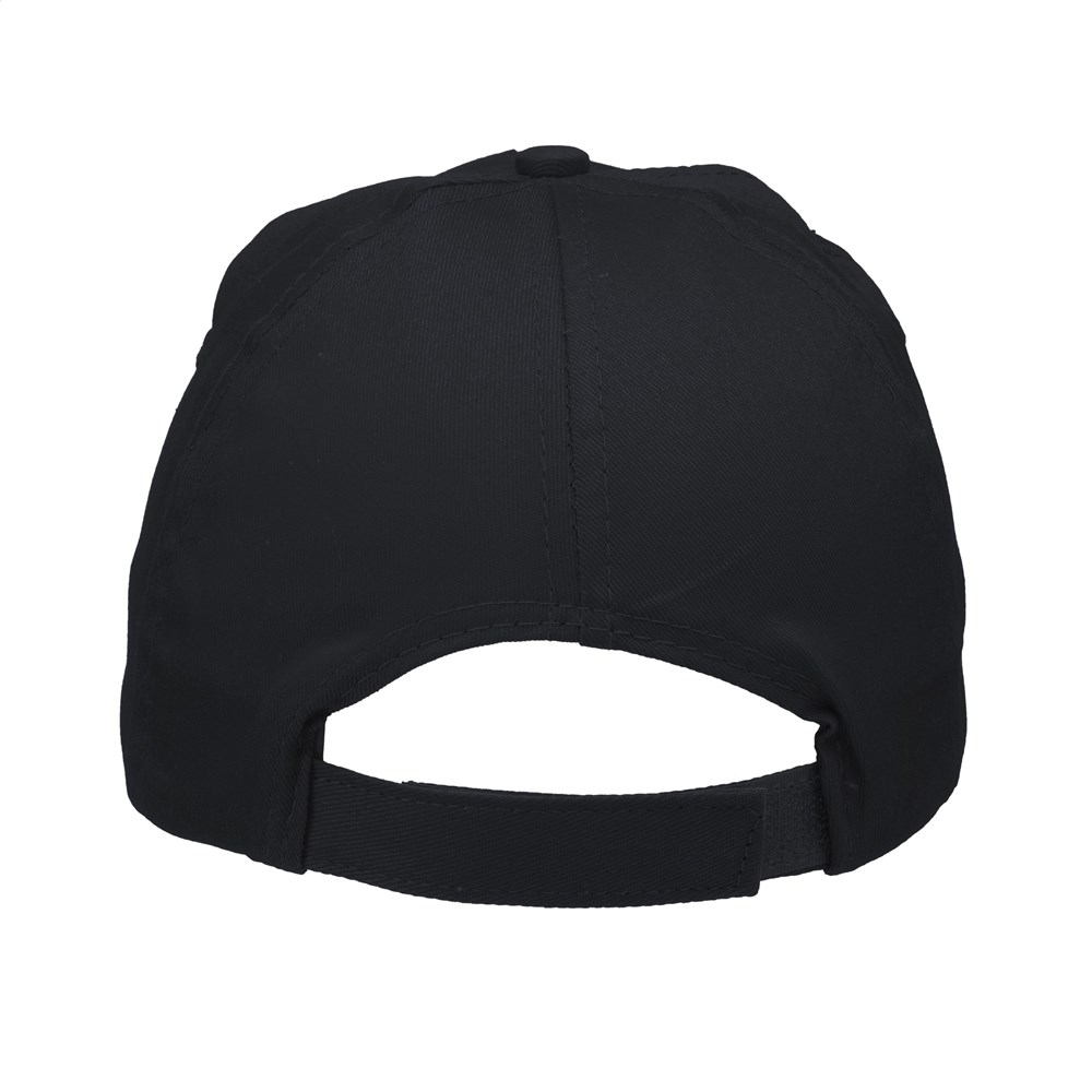 Baseball cap made from 100% cotton with pre-shaped peak and adjustable strap.