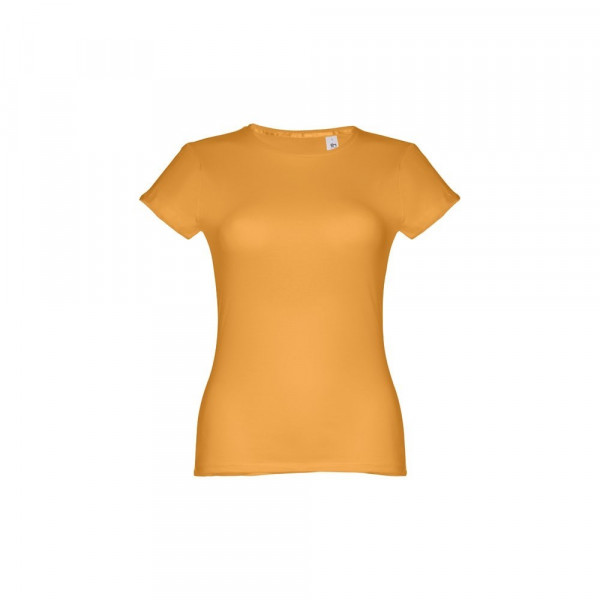Women's fitted T-shirt in 100% cotton jersey (150 g/m²) with carded cotton yarn (colour 183: 90% cotton/10% viscose). Features a thin double jersey collar reinforced by satin bias tape. Cut and sewn garment with double stitched sleeve and hemline. Size: 3XL