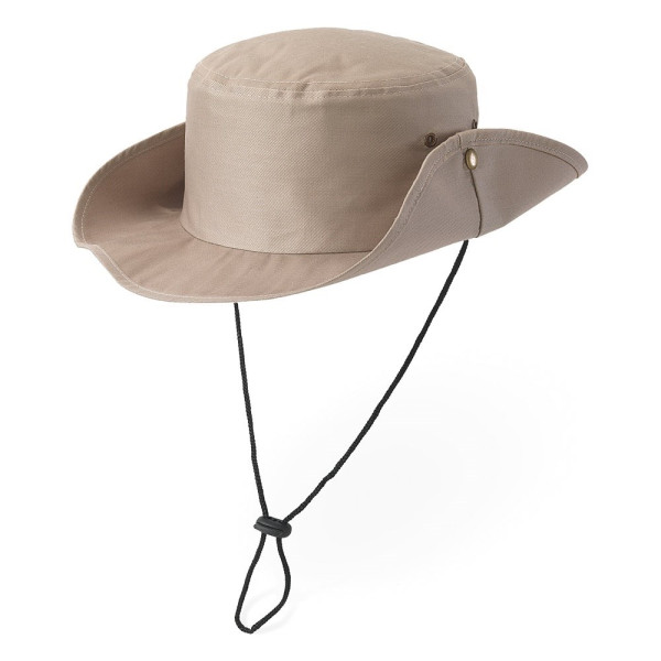 100% polyester safari hat with eyelets and adjustable cord (160 g/m²). Size: 580 mm