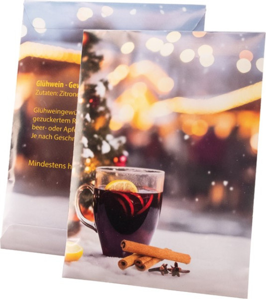 Our glogg condiment gives your hot drink a unique flavour with the aromatic spices cinnamon, lemon peel and cloves. You may use the standard design of the bag for your advertising or, also starting with 1.000 pieces, for your personalisation. Content: approx. 5 g glogg condiment