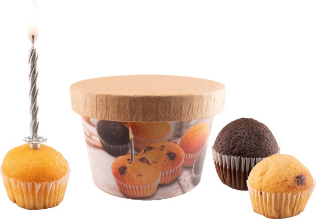 The delicious muffin and the candle create a festive atmosphere. Your customers will particularly... more
