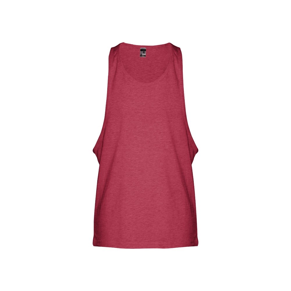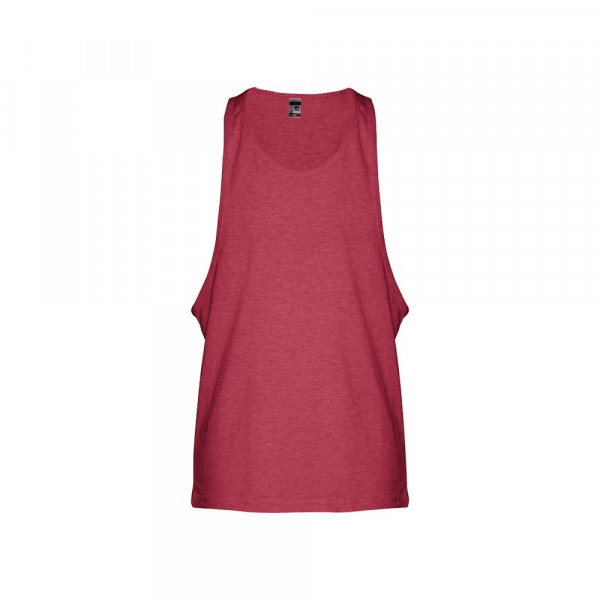 Camiseta sin mangas unisex en punto jersey de algodón 100% (140 g/m²) con hilo de algodón cardado. Tiene tirantes anchos y cuello redondo, rematados con ribete. Pieza cortada y cosida con doble costura en la parte inferior. Tallas: XS, S, M, L, XL, XXL