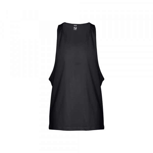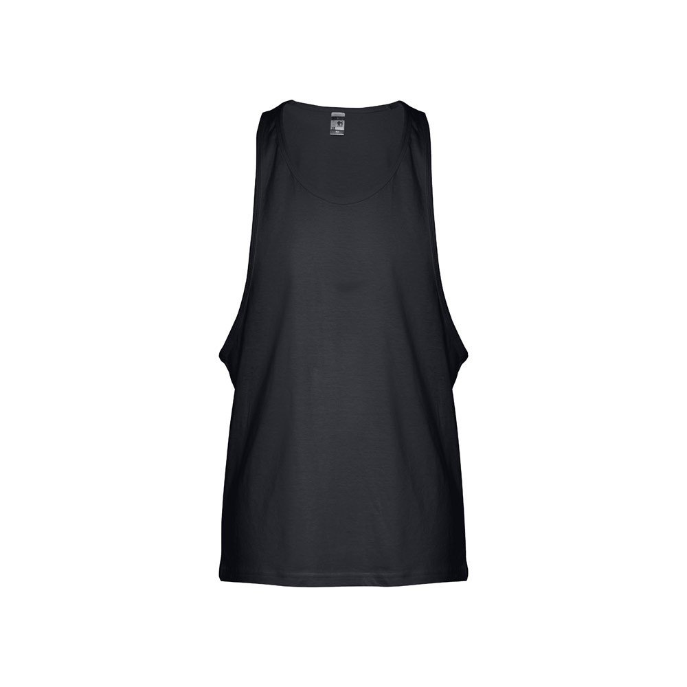 Camiseta sin mangas unisex en punto jersey de algodón 100% (140 g/m²) con hilo de algodón cardado. Tiene tirantes anchos y cuello redondo, rematados con ribete. Pieza cortada y cosida con doble costura en la parte inferior. Tallas: XS, S, M, L, XL, XXL