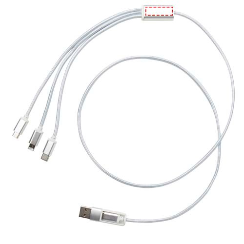 This cable features a USB-A and a Type-C input connector combined with a Type-C, a Micro USB and a Lightning/Micro USB combi output connector. Thanks to all these connectors you can charge most iOS/Android smartphones, cameras, power banks, and earbuds. The cable length is 100 cm and is made from recycled aluminium and RPET.