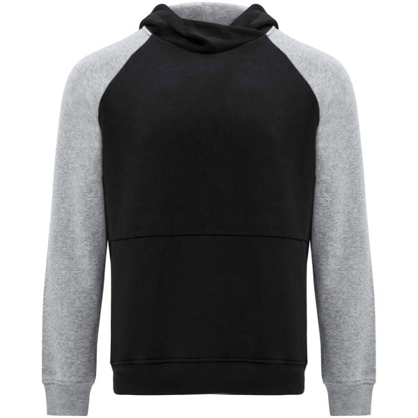 Two-colour unisex hoodie. Hood with crossed neck and metal eyelets. Contrasting inner hood, drawcord and raglan sleeves. Kangaroo pocket. Cuffs and hem in 1x1 elastane rib knit. Removable label.